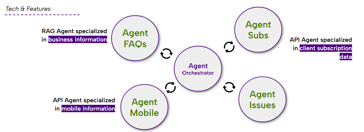 - Agent Mobile, Agent Subs, and Agent Issues tap into APIs to retrieve customer-specific data.