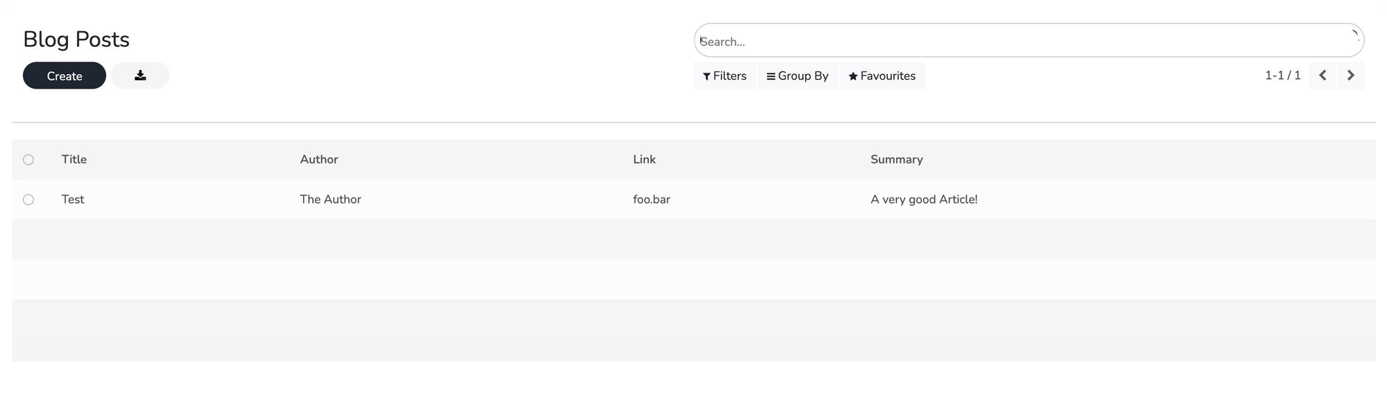 For example, a List and Form view can be created to list and create new records for blog posts.