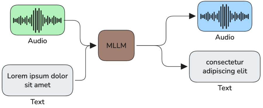 - Speech-to-speech models: a MLLM that can both consume and output audio.
